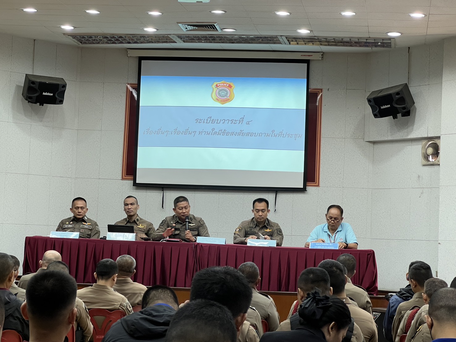 และข้าราชการตำรวจ สน.บางเขน ร่วมประชุมประจำเดือน ชี้แจงข้อราชการต่างๆ ระเบียบ ข้อสั่งการของผู้บังคับบัญชา ให้ข้าราชการตำรวจ สน.บางเขน เพื่อกำหนดแนวทางและแก้ไขปัญหาภายใน สน.บางเขน ต่อไป ณ ห้องประชุมชั้น 4 สน.บางเขน